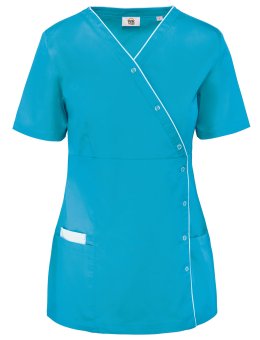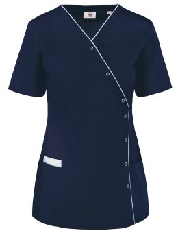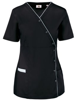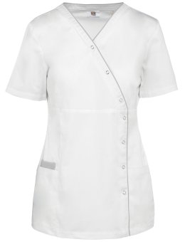 Lavage 60°. Tissu twill. Coupe ajustée grâce à des pinces devant et dos. Bouton pression.